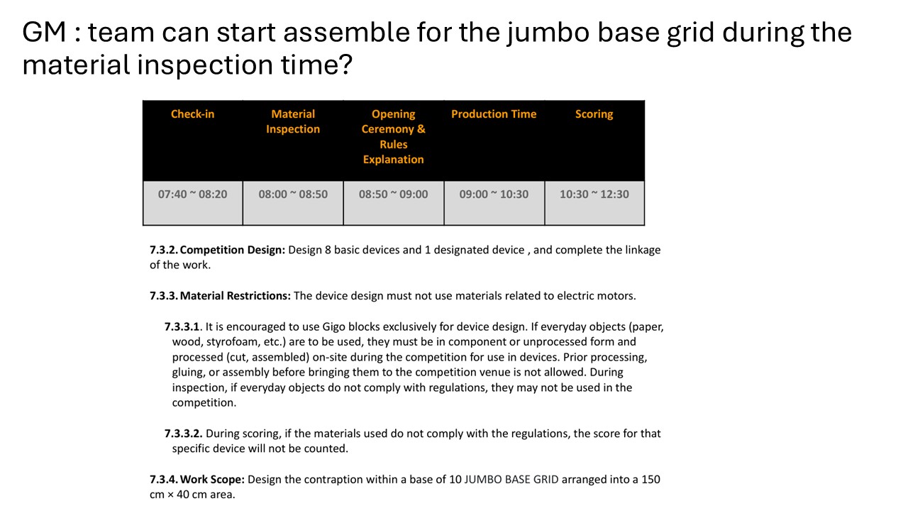 GM : team can start assemble for the jumbo base grid during the material inspection time?