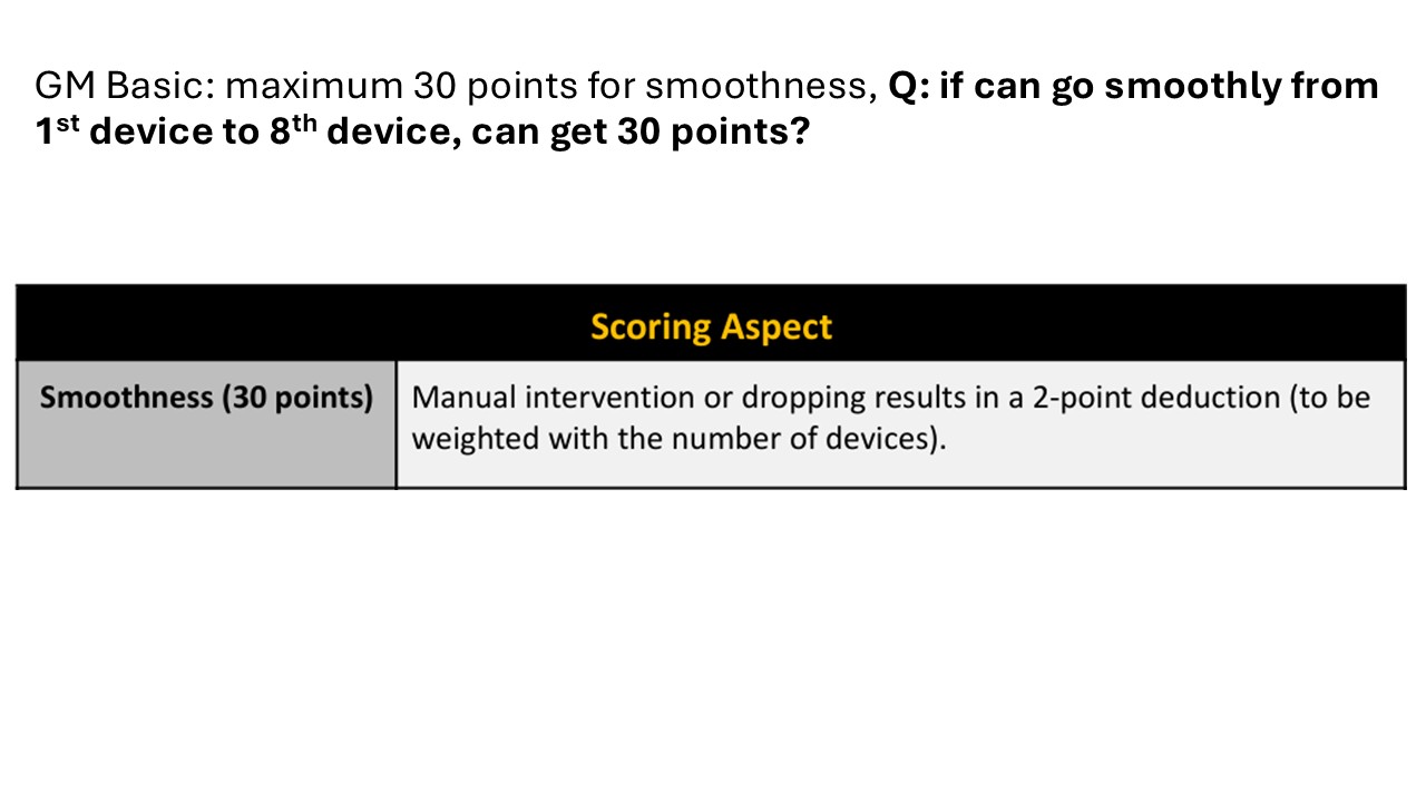 GM Basic: maximum 30 points for smoothness, Q: if can go smoothly from 1st device to 8th device, can get 30 points?