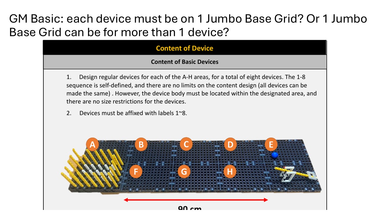 Each base grid must contain one device. The overall project must not exceed 180 × 60 cm. Overlapping Boundaries: Lenient interpretation for devices spanning areas; valid explanation of Base Plate ownership by Contestants is accepted.