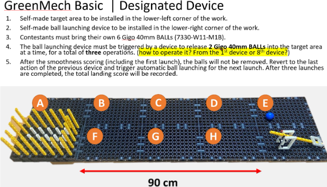 關於裝置設計與順序 (Regarding Device Design & Sequence) 問題:關於「1-8 順序為自定義 (self-defined)」:這是什麼意思?是指參賽者可以自行決定裝置的觸發順序嗎?還是必須按照 A-H 的順序?您如何定義「自定義」?在我的理解中,這代表順序完全由我(參賽者)自己決定。