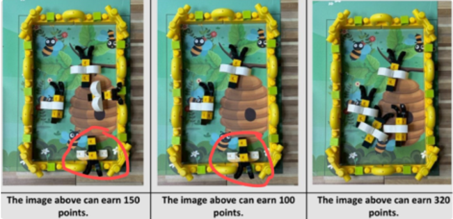 Q:您好,賽事影片中有說蜜蜂不能疊合,如照片所示利用積木間的嵌合方式,不知道是否可以呢?